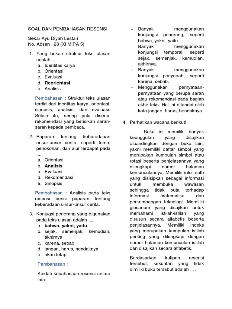 Contoh Soal Resensi Buku Dan Pembahasannya - Cara Membuat Resensi Buku Bahasa Indonesia Kelas 11 - We did not find results for:. Check spelling or type a new query. Maybe you would like to learn more about one of these? Contoh soal resensi buku dan pembahasannya. We did not find results for: